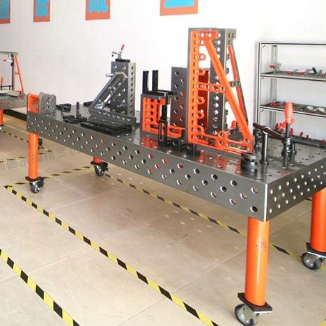 焊接工作臺是一種多用途焊接工裝平臺工藝裝備集焊接,裝配,檢驗為一體.具有三維柔性組合焊接工裝夾具同樣的互換性,通用性,經濟性等優點;與普通平板焊臺對比可以提高工作效率,節省原材料,節省資金;使用過程中可選擇多樣式的三維組合標準夾具配件進行夾緊定位加工作業,操作簡單、使用方便。