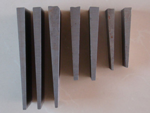 斜墊鐵按種類可分:鑄鐵斜墊鐵,鋼制斜墊鐵,防暴斜墊鐵三種。其中鑄鐵斜墊鐵材質(zhì)為HT250,鋼制斜墊鐵是Q235低碳鋼鍛造或機械技工而成。防爆斜墊鐵材質(zhì)為鈹青銅。